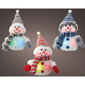 Der LED-Schneemann mit Farbwechsel (22 cm) bietet stimmungsvolle Beleuchtung in drei wechselnden Farben. Dank batteriebetriebener Funktion (Batterien nicht enthalten) ist er flexibel platzierbar, ohne auf eine Steckdose angewiesen zu sein. Mit seinem kompakten Design eignet er sich ideal für dezente Weihnachtsdekorationen im Innenbereich.